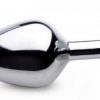 Booty Sparks Black Heart Gem Anal Plug Medium from XR Brands. Decorate your derriere with this Dark Heart Anal Plug! The small size makes this plug perfect for beginners to begin their journey into the world of back door fun. Use this plug to warm up your ass hole for the main event, or as a dedicated backdoor filler while you play with your partner for double penetration satisfaction. Constructed with a nickel free aluminum alloy material that is smooth, weighty, and body safe for worry free anal satisfaction! Compatible with most lubes and easy to clean before and after use. Medium butt plug measurements: overall length 3.2 inches, insertable length 2.7 inches, widest diameter 1.3 inches. Materials: Aluminum alloy, ABS Plastic. Color: Silver, black. Key features decorate your derriere. Show off your love and add a flash of black to your booty! Perfect for showing off to your lover when you bend over to entice their sexual appetite. Comfortably weighted. Built with a weighty density to provide a downward pull and relentless fill for you to squeeze on. Nickel Free Aluminum Alloy. The nickel free material is safe to insert for most bodies, and is compatible with all kinds of lubes so you can play with your favorite brand of slippery stuff. Great for temperature play. Heat or chill this Black Heart anal plug in a bowl of warm or cold water to add another layer of sensation to your back door fill.