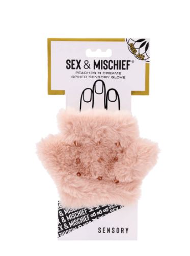 Sweet or spicy? Pain or pleasure? With the Peaches N CreaMe Spiked Sensory Glove, you dont have to choose. Tease, thrill, and command attention with every stroke, these palm gloves turn even the softest touch into an irresistible power play. The palm features a lush layer of faux fur that dances across the skin, paired with gleaming rose-gold spikes for a bold, uninhibited strike when the mood shifts. The shimmery, stretch Lycra back contours comfortably to your hand, while dedicated pinky and thumb slots keep the glove secure during every sultry session. Naughty or nice, this glove leaves them guessing and begging for more. Features: Lucious soft faux fur palm and shimmery Lycra back Raised rose-gold spikes embedded into the palm-side Fits comfortably on either hand One size fit most