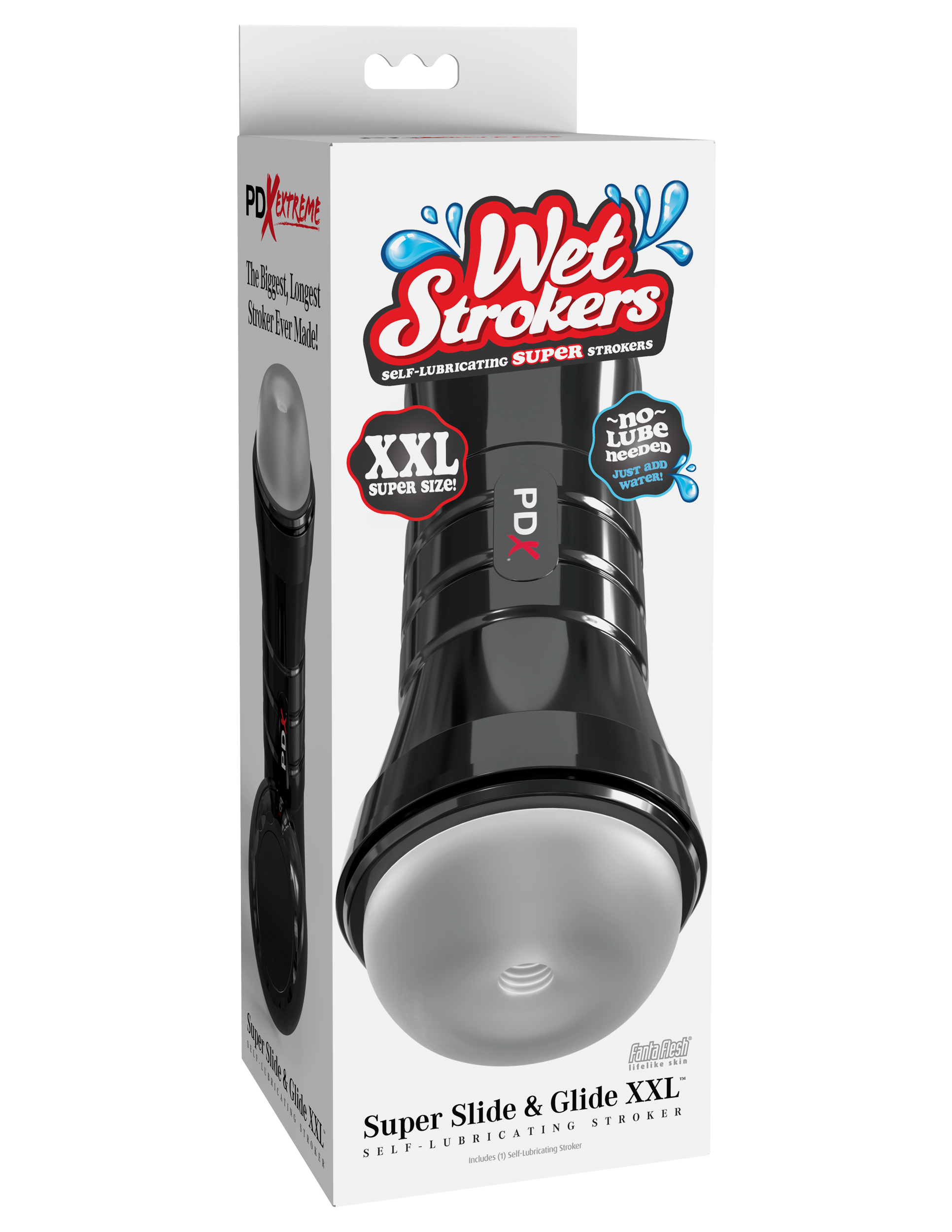 Get ready for the biggest, longest stroker ever made! you’re about to experience and unforgettable stroking session when you stick your dick deep inside the Wet Strokers’ Super Stroker XXL. It’s self lubricating, which means that all it takes is a little water, and your stroker turns into a pleasure zone of slippery orgasmic fun! Designed with a super-stimulating pleasure tunnel, you can be sure that this stroker FEELS better than the real Thing! The Wet Strokers’ Super Stroker XXL Features Precision Suction Control, so You can easily adjust the air flow to customize your experience. It also features a super-sized , EZ Grip case that protects your stroker, acts as discreet storage, and was designed for comfort and easy handling. So Stop dreaming about wet holes and start creaming in one today!